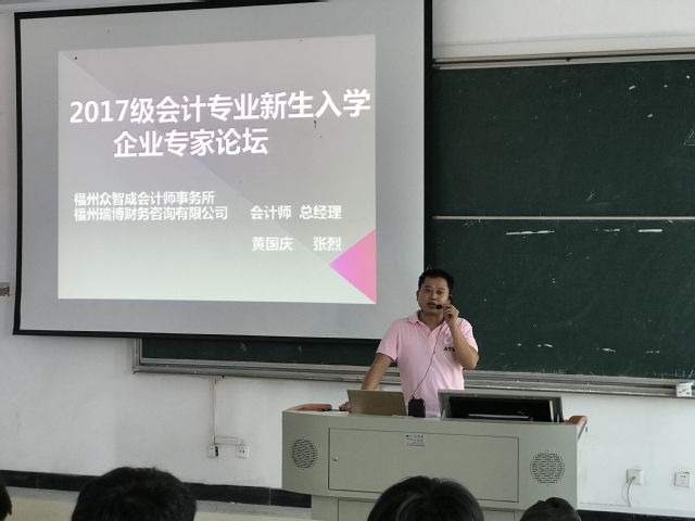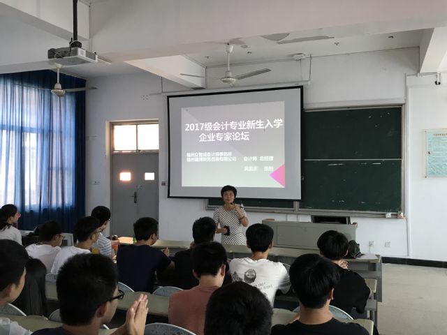 会计作为一种商业语言,在经贸交往中起着不可替代的作用。为普及新生会计知识、为自己将来的就业之路奠定基础。2017年9月27日,福州职业技术学院商学院在二号教学楼409教室举办会计专业企业专家宣讲会。