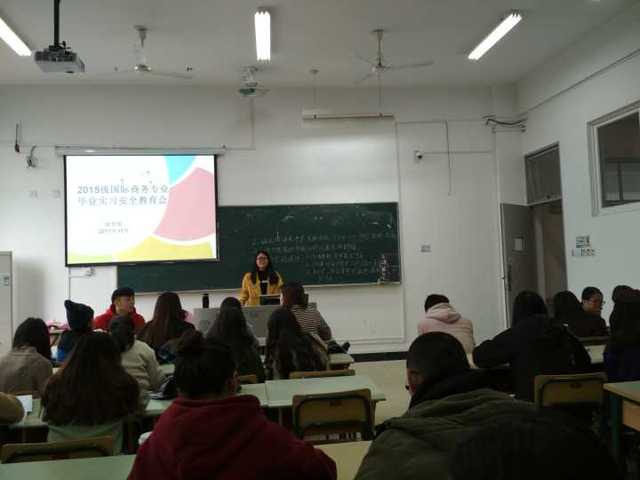 提高同学们实习期间的安全意识, 1124日,2015级国际商务专业于2#307召开实习安全教育会。此次会议由辅导员罗华香主持,该专业全体学生参加。