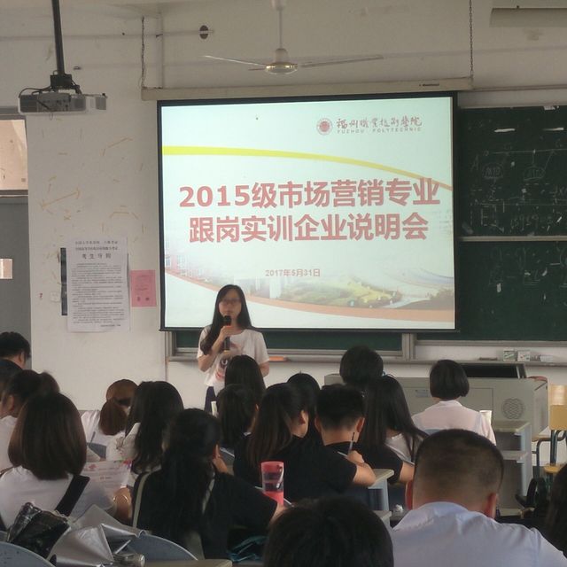 会前,曾老师着重强调了此次说明会的意义与目的,向与会同学传达了跟岗实训的重要性。随后,中国人寿、铉铠工资企业、沃龙茗茶、中国联通、福州东进货运代理有限公司、华诚移动公司、常青藤教育科技、朗雅装饰、毛博士医疗器械有限公司等企业依次介绍企业文化、企业历史、企业发展趋势、用人要求、福利待遇等,让与会同学对未来的跟岗实训企业有了全方位的了解。