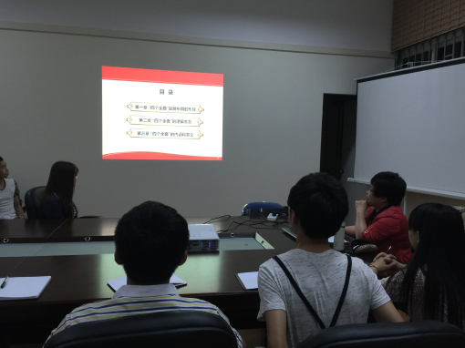 2015年5月10日晚上,福州职业技术学院青马社团理论学习会在思政部会议室召开,由社团指导老师陆芳教授主讲,内容为《“四个全面”开启治国理论新未来》,主要包括:“四个全面”战略布局的形成;“四个全面”的逻辑关系;“四个全面”的内涵和意义。