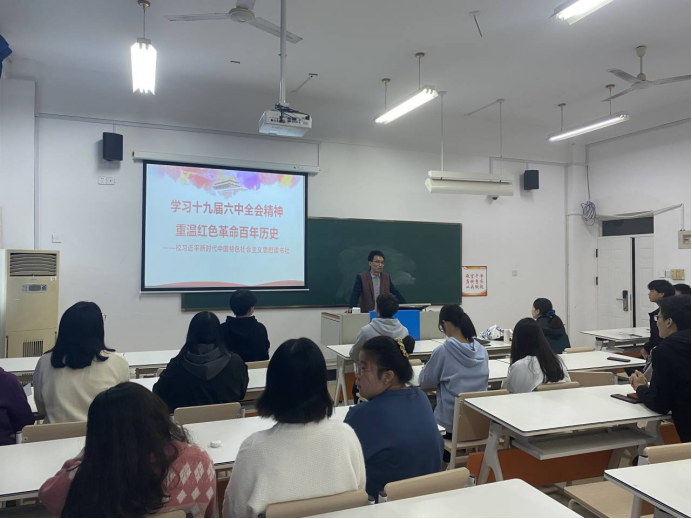2021年12月5日,福州职业技术学院习近平新时代中国特色社会主义思想读书社在实验楼304教室开展“学习党的十九届六中全会精神,重温红色革命历史”主题学习活动。
