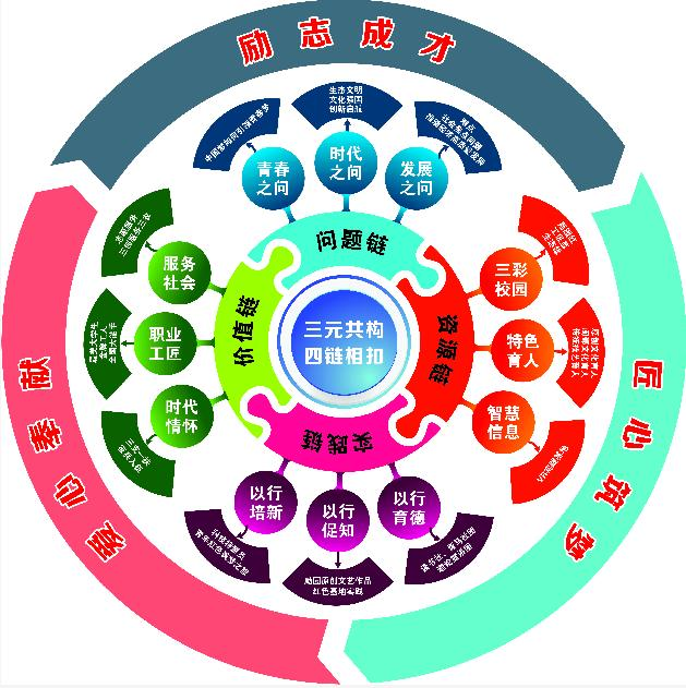学校“励园文化”深耕厚植二十载,积极培育师生崇高理想、坚定信仰、和谐人格、优雅行为。马克思主义学院全面挖掘“励园文化”的价值意蕴,将三个核心内涵共构成一部鲜明的校园教科书,并通过“四链相扣”的形式融入到思政课教学中。“励园文化”高品位滋养思政课程建设,课程建设同时又催生课程文化——形成“励园红、工匠蓝、生态绿”三彩“课程文化”。“励园文化”在教学模式的探索与实践中的系统性运用,充分调动了广大教师积极参与教育教学研究与改革创新的积极性,为学校继续认真落实立德树人根本任务,不断提高人才培养质量注入能量。