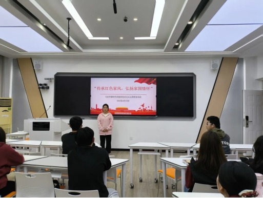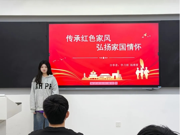 家书家训,是良好家风的有形载体。在革命、建设、改革的峥嵘岁月里,一代代共产党人所建立和倡导的红色家风,是我们党的传家宝。在今天的活动中,读书社的同学们分享了毛泽东、方志敏、茅以升等人的家风家训故事,让我们深入了解先辈们在家风建设中的风范。他们坚持不懈为人民奋斗,以国家民族大义为重,并将良好家风代代相传,让如今的我们深受鼓舞。 最后,杨颖老师以习近平总书记讲述的全国道德模范龚全珍同志发扬艰苦奋斗精神的故事,鼓励同学们培育和传承良好家风,争做时代新人。