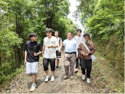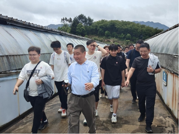 实践队师生在陈谟凑董事长的带领下,参观了生态农业大观园。陈谟凑指着满目的绿色跟大家介绍:在这里,盛夏,1000亩紫薇花开,漫山遍野的粉紫色花朵随风摇曳;金秋,1600亩桂花氤氲出沁人的芬芳……每个季节都有不同的生态美。这里不仅有观赏性植物,还有他引进的雪柑、美国脐橙、台湾青花梨、意大利血橙等水果,就连良种猪和良种山羊等也成了山里“长住客”。陈谟凑还带领大家去参观了获得实用新型专利的高科技鳗鱼养殖场,看着今天这丰饶的生态资源,很难想象曾经这里是一座“荒山”。师生们真真切切地看到了习近平生态文明思想的践行成果,“两山论”从课本走进了现实。