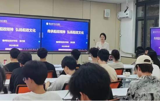 在船政校区,张兰英副校长为学生讲授了一堂题为《传承船政精神弘扬船政文化》的思政课。她从“船政的创办”“船政的机构”“船政的成就”“船政的精神”四个方面详细介绍了船政历史和成就,讲述了严复、左宗棠、沈葆桢、邓世昌等一批船政精英为国奋战的英勇事迹和“爱国、科学、创新、图强”的船政精神。她勉励同学们要牢记习近平总书记的嘱托,弘扬船政精神,精益求精、改革创新,积极拼搏进取,争做时代新人,为实现中华民族伟大复兴而努力奋斗。