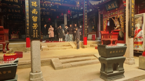 校读书社和实践队师生在侯官村文化宣讲员的带领下迈入了侯官村的古建筑群落,犹如走入厚重的历史长河。这些历经风雨侵蚀、岁月洗礼的古建筑,依旧以不屈不挠的姿态矗立,彰显出一种顽强而深沉的生命力。它们以沉默的砖石为笔,勾勒出过往的辉煌与沧桑,向我们讲述着那些被时光尘封的故事。