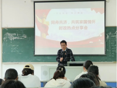 为增强青年学生对时政热点的关注与理解,培育青年学生家国情怀,我校习近平新时代中国特色社会主义思想读书社于3月19日在至善楼312教室开展“同舟共济 共筑家国情怀”时政热点主题分享活动。