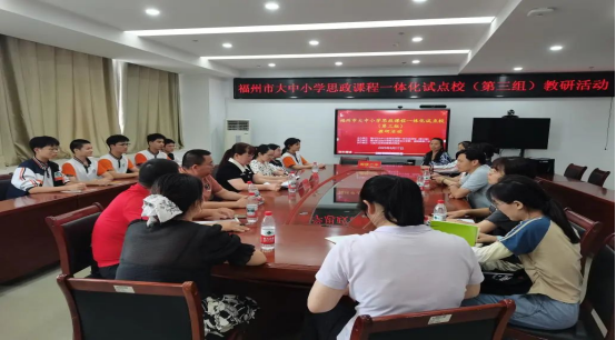 为深入贯彻落实习近平总书记关于教育的重要论述和全国教育大会精神,推进大中小学思政课一体化建设,构建循序渐进、螺旋上升的思政课程体系。6月17日,由闽侯教育局指导,福州市大中小学思政课一体化试点校(第三组)主办、福州职业技术学院马克思主义学院、闽侯县第二中学承办的大中小学思政课程一体化试点校(第三组)教研活动顺利举办。福州职业技术学院副书记刘春兰、闽侯县教育局德育科科长赵坤、福州职业技术学院马克思主义学院院长林岩清、闽侯二中副校长庄爱平,福州职业技术学院师生,闽侯二中师生,福州市大中小学思政课程一体化试点校第三组院校教师代表、七里片区思政德育共同体中小学思政课教师代表等十多所学校近百名师生参加活动。