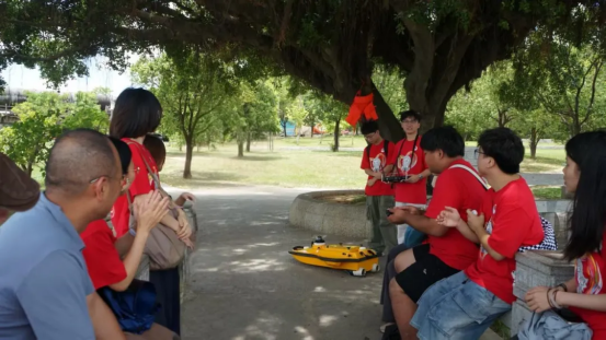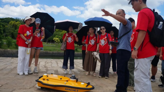 “启动无人船系统,调整测量参数……” 在机电工程学院戴飞铭老师的专业指导下,实践队将课堂所学转化为实践行动。搭载多波束声呐的无人船缓缓驶入木兰溪,实时回传的水下地形数据、水质监测指标在平板电脑上动态呈现,形成包含河床坡度、泥沙淤积量、水质 PH 值等指标的分析报告。数据显示河床稳定性显著提升,这印证了生态治理的科学性。参与操作的机电工程学院同学在向大家展示成果时说,科技手段让抽象的治理成效变得可测量、可感知。通过无人船多波束扫描与声呐监测,木兰溪生态治理成效显著,“水清、岸绿、景美”的生态画卷成为现实,是“幸福河湖”示范案例。