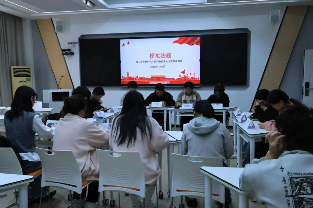 为提升同学们的法律素养与思辨能力,沉浸式感受司法实践魅力,12月3日,我校习近平新时代中国特色社会主义思想读书社在至善楼 302 教室成功举办模拟法庭活动。