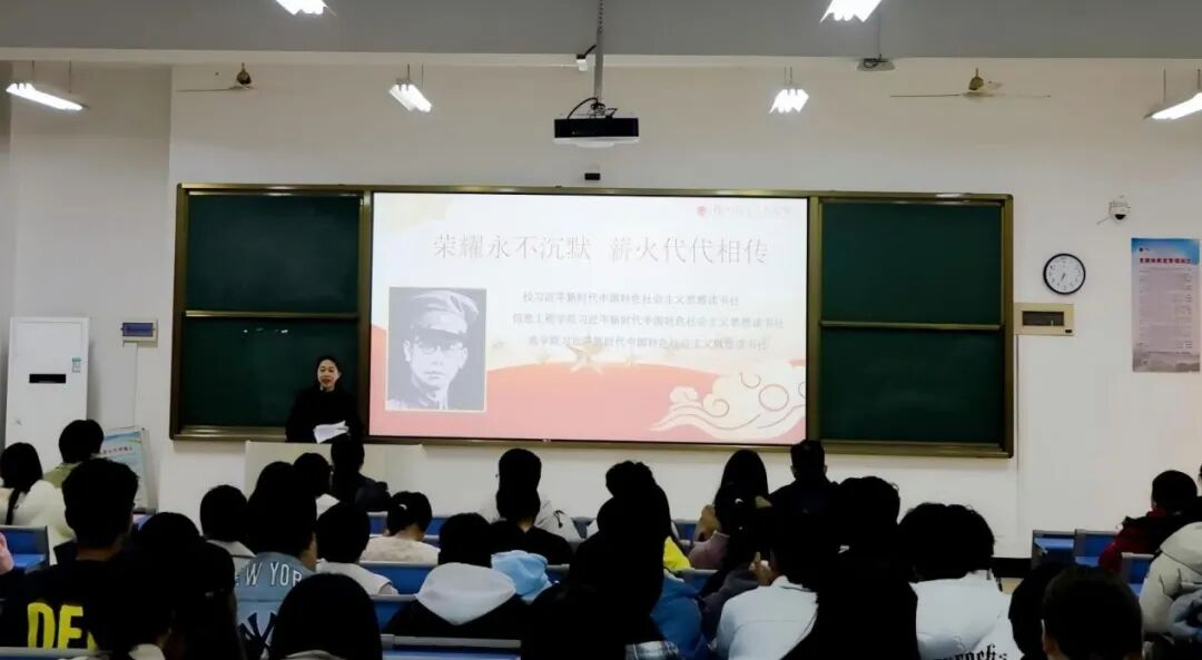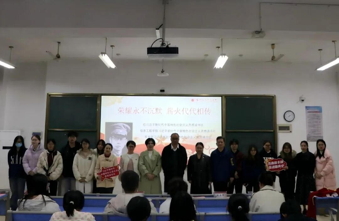 12月30日晚,一场别开生面的“大思政课”在福州职业技术学院至善楼312教室生动上演。由校习近平新时代中国特色社会主义思想读书社、信息工程学院习近平新时代中国特色社会主义思想读书社、商学院习近平新时代中国特色社会主义思想读书社联合举办的“荣耀永不沉默 薪火代代相传”主题教育活动,通过沉浸式的故事讲述、经典传唱和专家讲座,将厚重的革命历史转化为鲜活的育人教材,引导青年学子在深刻感悟中汲取精神力量,坚定理想信念。校党委副书记刘春兰、信息工程学院党委书记陈乐平、马克思主义学院院长林岩清、读书社指导教师以及读书社学生骨干齐聚一堂,共同开启这场特殊的思政之旅。