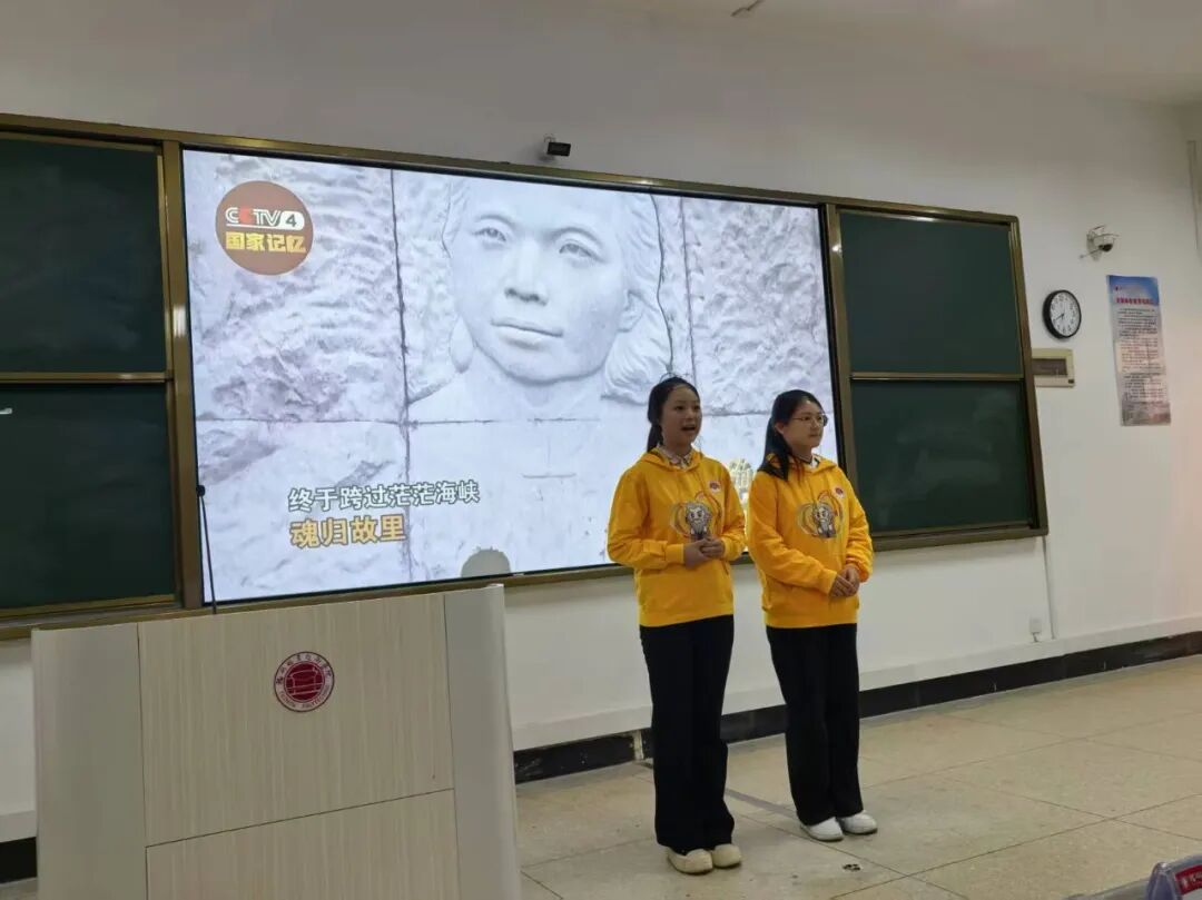 “荣耀的背后,是无数英雄的默默付出与壮烈牺牲。” 活动在校读书社叶雅婷、蔡若琳两位同学讲述的红色故事中拉开序幕。“这趟回家的路,她走了60 年……”,两位同学用深情的语言还原了朱枫烈士为革命事业挺身而出、坚守信仰的峥嵘岁月。真挚的情感、动人的叙事,让现场师生仿佛穿越时空,真切感受到革命先辈对理想信念的执着追求和对党的无限忠诚,不少观众眼眶泛红,敬意油然而生。