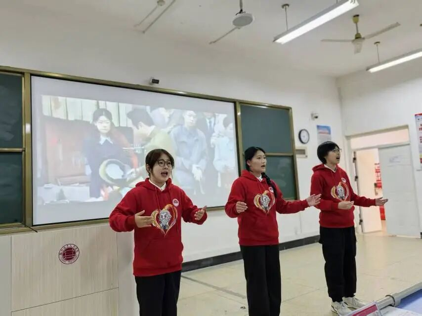 歌声映初心,经典永流传。信息工程学院和商学院读书社成员张豫铭、王孜菡和马子清带来的小组唱《珊瑚颂》,以优美的旋律、饱满的情感,歌颂了隐蔽战线的先烈们如珊瑚般坚贞不屈的品格。激昂澎湃的演唱将革命浪漫主义情怀与坚定信念融为一体,既展现了红色经典的时代魅力,也让现场氛围愈发热烈,掌声此起彼伏。