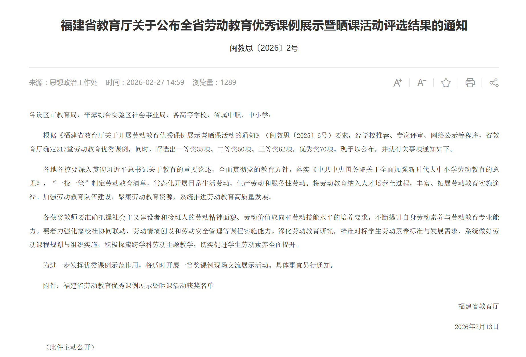近日,福建省教育厅公布全省劳动教育优秀课例展示暨晒课活动评选结果。我校教师陈佳婧主讲的课例《从虚拟预案到实体守护》荣获高职组二等奖。