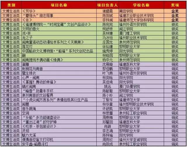 为更好地激发大学生文化创新创意活力,提升大学生的创新精神、创业意识和创新创业能力,福建省教育厅联合福建省文化厅、福建省旅游发展委员会于2017年6月启动第二届福建省大学生文化创新创意大赛。