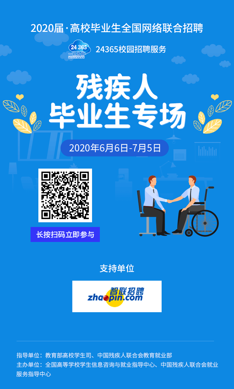 主办单位:全国高等学校学生信息咨询与就业指导中心、中国残疾人联合会就业服务指导中心