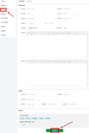 2、进入职位信息发布页面,填写所有职位信息后,点击“发布职位”按钮即可;