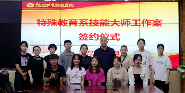 为进一步推动高职听障生人才培养模式的改革,充分发挥技能大师在教学实践和专业发展上的引领作用,9月7日,特殊教育系举办刘榕冰技能大师工作室签约仪式。刘榕冰大师,人事处处长徐金双,特殊教育系党支部书记李燕燕、副主任沈丽娟及相关人员参加活动。