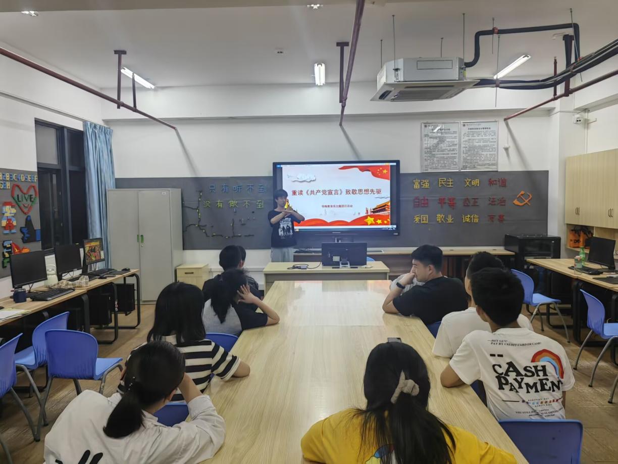 在系团总支的组织下,各班团支部开展了“重读《共产党宣言》 致敬思想先驱”读书分享活动。在分享会上,大家各抒己见,畅谈了自己的学习体会,感谢前辈先驱给我们留下了一部伟大的著作,表示在今后的学习工作中要把学到的马克思主义哲学用于树立和巩固自己正确的世界观、人生观和价值观。
