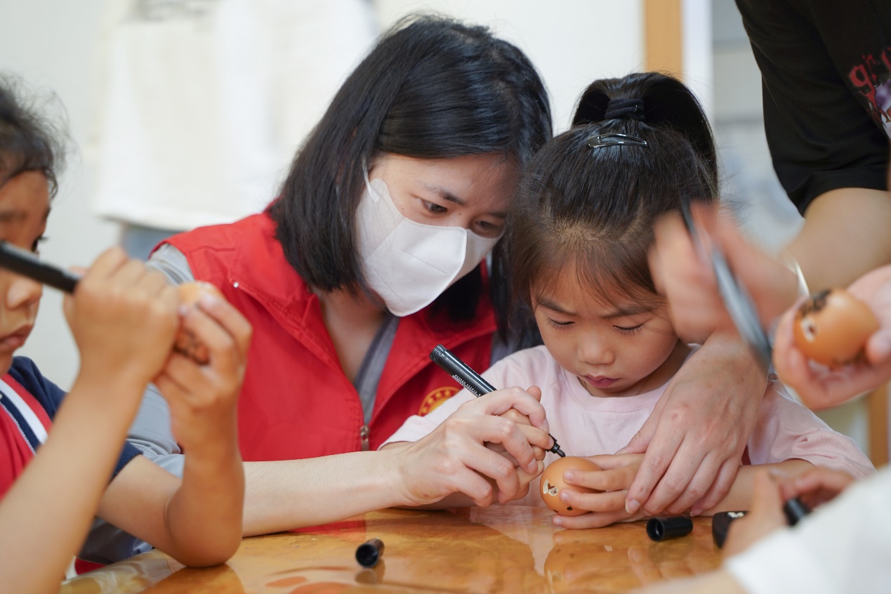 在活动中,黄杨隆老师和特教系的同学们耐心为孩子们演示蛋雕基本手法,手把手传授基本技巧,特教学子与孩子们友爱互动,默契配合,充分发挥孩子们的想象力与创造力,在师生们的指导下孩子们开心地完成了各自的手工蛋雕作品。