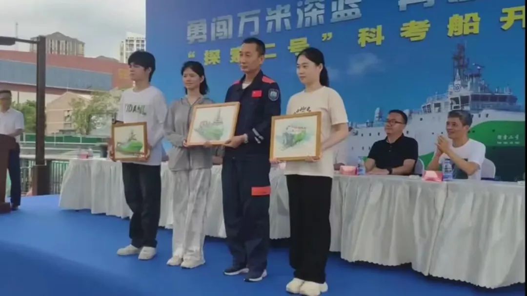 6月24日,“探索二号”科考船启航仪式在马尾船政博物馆隆重举行。为了向此次科考船开航表达深深的祝福和崇高的敬意,我校特教系师生在开航仪式上向“探索二号”赠送了三幅画作。
