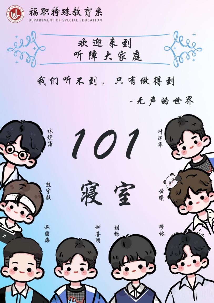为丰富特教学生的课余文化生活,打造“共享+宿舍”学生一站式社区,增强宿舍成员之间的友情,进一步展示自己的宿舍文化和风采,特殊教育系于2023年12月举办了以“竞清雅之室,树同德之风”为主题的宿舍门牌设计比赛。