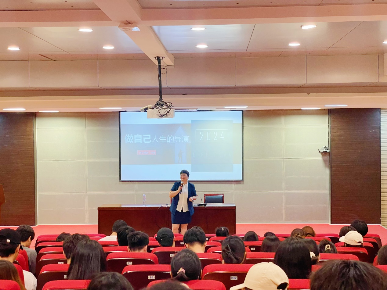 郑曦老师紧扣“做自己人生的导演”这一主题,结合自身多年的求学和工作经验,强调了人生规划的重要性。她详细阐述了职业生涯规划的五大要素:知己、知彼、决策、目标、行动,并深入剖析了当前各行业发展趋势。此外,郑老师还现场指导学生运用了自身状态核查 ‘六步法’。她勉励同学们要结合所学专业和兴趣爱好,尽早进行职业规划,不断摸索和尝试,找到适合自己的发展方向,实现人生价值。