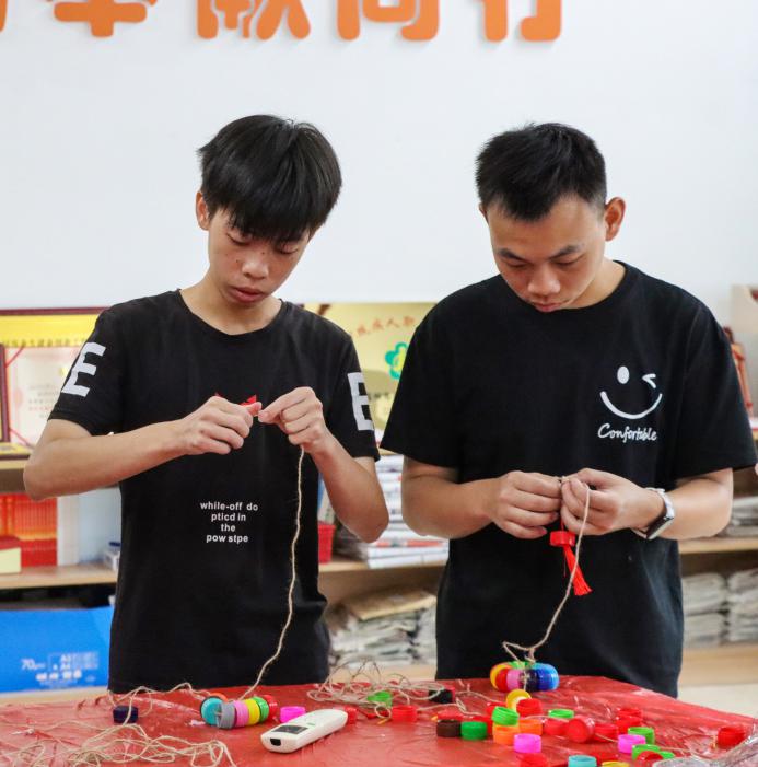 学院组织师生一起共同参与变废为宝手工制作活动,结合环保主题,利用生活当中随处可见的塑料瓶盖制作出中秋灯笼。在手工制作过程中提高特教学子们环保意识,增强对废旧物再利用的能力,提升特教学子回馈社会的信心,。