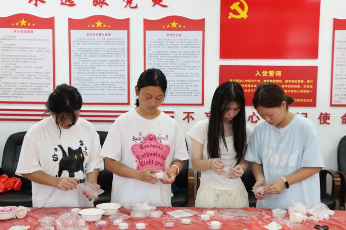 特教学院领导和团支部书记在假期来到活动现场,与同学们欢聚一堂,共同制作手工月饼。他们一起揉面、包馅、压模,每一个步骤都充满了温馨。随着一个个圆润饱满、形态各异的月饼逐渐成形,空气中弥漫着香甜的气息,更添节日的喜庆与温馨。学院领导还带来了孩子们喜欢的零食,让同学深深地感受到了学院对他们的爱,仿佛亲人般的关怀与陪伴让这份中秋情更加浓厚,进一步拉近了师生之间的距离。这次手工月饼制作活动,不仅是一次传统文化的体验之旅,更是缓解了同学们对家乡的思念之情,让他们深刻感受到了特教大家庭的温暖与包容,让每一位参与者都收获满满,留下了难忘的回忆。