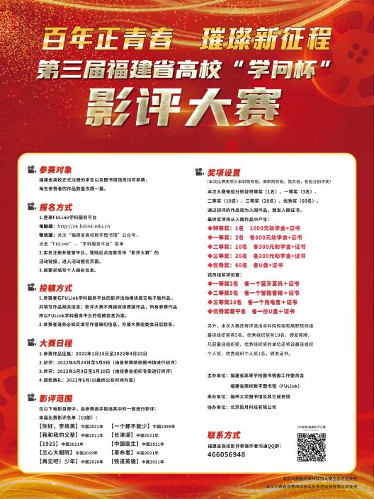 疫情防控期间,图书馆关注广大师生科研和学习需求,持续提供校外VPN,满足了广大师生疫情期间在校外访问图书馆电子资源的需求。持续开展多种线上活动,如影评活动等,向广大师生征集影评作品,丰富同学们的课余生活。