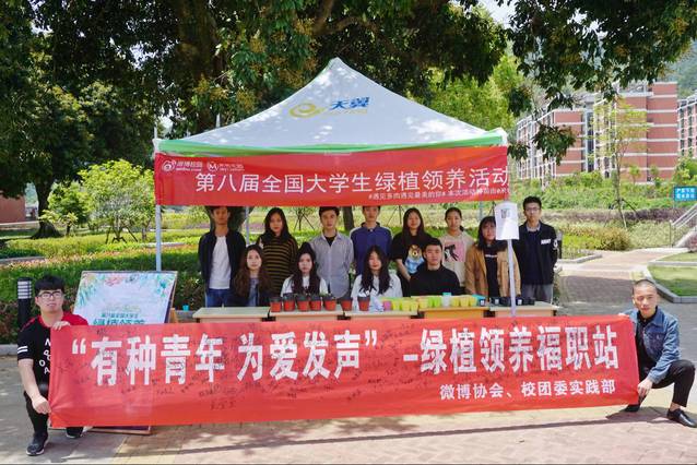 2018418日,由共青团中央学工部和新浪微博共同发起的第八届全国大学生绿植领养活动在我校顺利开展。本次校内绿植领养活动由微博协会、校实践部共同承办。活动旨在让同学们亲身参与培育绿植中,树立同学们的环保意识,共同构建环保绿色校园。