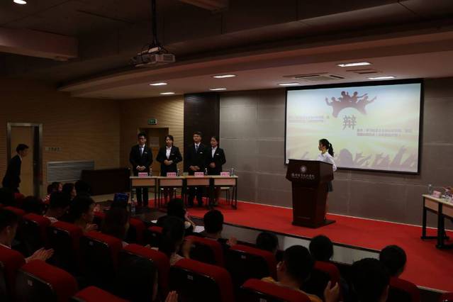2018年5月6日,由校团委主办,校学生会学习部承办的第十五届“励园青年说”学生辩论赛决赛在学术报告厅拉开帷幕。决赛中正方国际教育学院与反方文化创意学院,就“学习社会主义核心价值观应以教育引导为主还是以自主学习为主”这一辩题展开激烈交锋。正方选手先发制人,以“教育引导”一词开宗明义,随后阐述了当下实事发展趋势并结合正方辩题稳固观点;而反方则联系生活实际,进行一系列连环质问,从而证实自我立场。比赛过程中唇枪舌战,正反方思维碰撞,队友之间的配合也十分默契,同伴之间不断用眼神交流,不时传递小纸条制备战术。“应对如转丸,疏通略文字”,经过一番激烈的辩论,反方文化创意学院最终力压正方国际教育学院,获得了本届辩论赛的最终胜利。