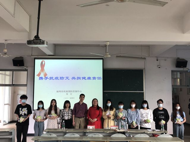 为大力宣传艾滋病防治知识和新冠肺炎防疫知识,校团委于2021年4月21日下午开展主题为“携手抗疫防艾 共担健康责任”的知识讲座。此次讲座由福州市疾病预防控制中心艾滋病防治科张宏科长主讲,同时福州市团委吴艳媚老师也莅临我校。