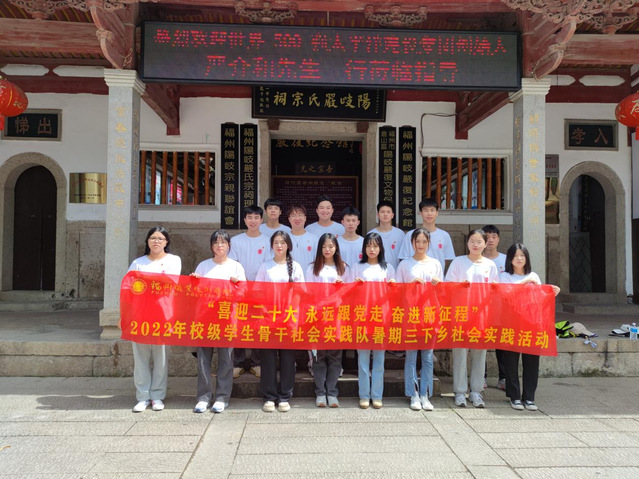 深入学习宣传贯彻习近平新时代中国特色社会主义思想和习近平总书记关于青年工作的重要思想,引导和帮助广大青年学生在社会课堂中受教育、长才干、作贡献,在观察实践中学党史、强信念、跟党走,努力成为担当民族复兴大任的时代新人。围绕“喜迎二十大 永远跟党走 奋进新征程”为主题的2022年学生暑期“三下乡”社会实践活动,7月1日,校团委组织校级学生干部、校学生艺术团骨干、习近平新时代中国特色社会主义思想读书社成员、校“青马”社成员一行前往马尾参观船政衙门、潮江楼、诏忠祠,阳岐严复纪念馆开展暑期“三下乡”社会实践活动。