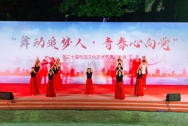 为深刻学习贯彻党的二十大精神,培育和践行社会主义核心价值观,弘扬博大精深的中华舞蹈文化,营造健康向上的校园文化艺术氛围,近日,我校在励园广场成功举办第十二届“舞动追梦人·青春心向党”校园舞蹈大赛。各二级学院的参赛作品热情洋溢,斗志昂扬,参赛队伍在舞台上尽情发挥,以音乐与舞蹈的完美结合,表达了当代大学生的爱国情怀和热爱祖国的情感,充分展示了励园学子朝气蓬勃、积极向上的精神面貌。