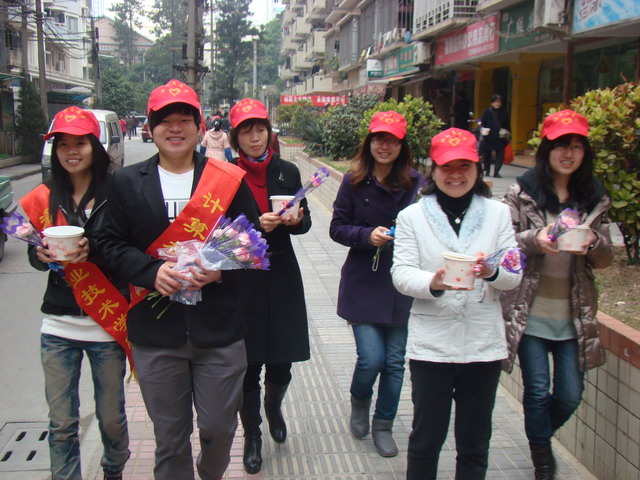 3月2日上午一大早,计算机系十几名青年志愿者带康乃馨前往阳光社区给老人们送温暖。在活动中,志愿者们为老人们盛上一碗碗热腾腾的拗九粥,当老人们双手接过粥和鲜花时,他们的脸上洋溢着幸福与甜蜜。老人们在广场上打着腰鼓、唱着歌曲、跳着舞,一片热闹,打鼓声、欢笑交织一起。志愿者们还上门为一些行动不便的老人送去拗九粥和绽放的康乃馨,并送上了暖暖的拥抱。热腾腾的拗九粥传递着暖暖的情谊,在彼此的心间燃起幸福的火苗。