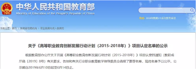 《高等职业教育创新发展行动计划(2015-2018年)》项目认定名单