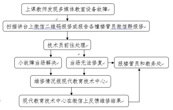 为了不断完善多媒体教室管理,提高设备使用率,结合学校实际情况,教师在发现公共多媒体教室设备出现故障时,可以通过以下方式报修。具体流程如下: