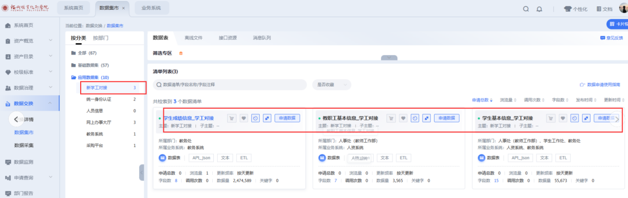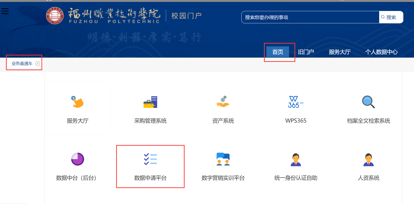 学校信息门户—业务直通—更多—数据申请平台