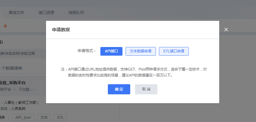 四、选择需要对接的方式(api是接口对接,需要程序调用、文本是文本导出、ETL是中间库数据推送)