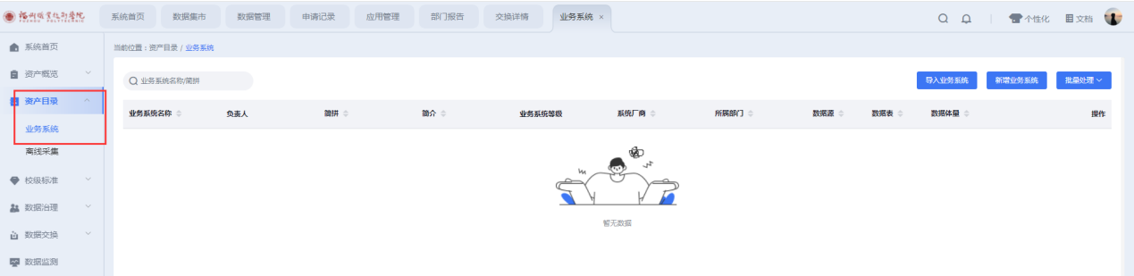 资产目录→业务系统→新增业务系统