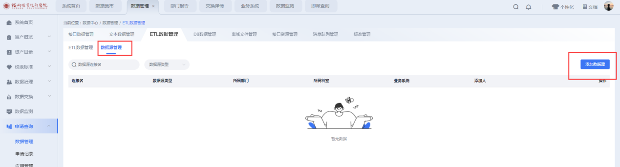 申请查询→数据管理→ETL数据管理→数据源管理→添加数据源