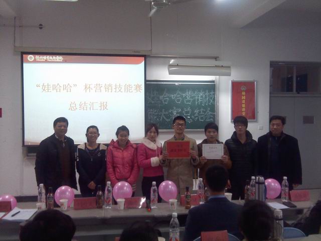 经过营销方案策划和一个月的校内外实战销售,福建省“娃哈哈”杯第三届大学生市场营销技能大赛福州职业技术学院赛区的比赛圆满落下帷幕。2013年12月25日下午,在2号教学楼509教室迎来了本次比赛的最后一个环节――市场营销技能大赛总结汇报暨颁奖典礼。来自娃哈哈福建省分公司福州拓展队的姜斌队长和市场营销专业的全体教师担任本次比赛的评委,各团队围绕竞赛的计划、取得的成绩、存在的问题和原因、建议等内容谈了各自的体会和感受。经过激烈角逐,虞超等6位同学组成的天涯队获得一等奖,张熙晨等6位同学组成的夕阳西下几时回队、张瑜等6位同学组成的酷跑队获得二等奖,胡锦瑞等6位同学组成的青年队、林少杰等6位同学组成的娃娃哈队、陈思国等6位同学组成的啦啦队获得三等奖。商贸系的陈宝龙副书记、闫丹文副主任、娃哈哈福州分公司的姜队长及市场营销专业教师为获奖队伍颁发奖状和奖金。闫丹文副主任做了总结发言,他要求同学们以更积极的态度、更专业的表现面对学习和竞赛,争取取得更大成绩。