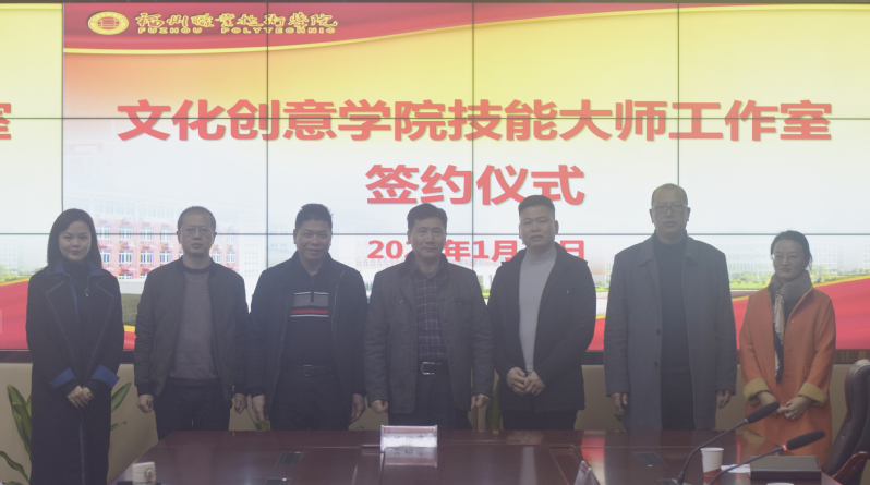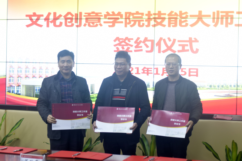 2021年1月15日上午,文化创意学院举行技能大师工作室签约仪式在特教楼会议室举行。副校长刘松林,人事处、校友会办公室、文化创意学院等等相关部门负责人,艺术设计专业全体教师和学生代表参加仪式,仪式由文化创意学院院长林东主持。