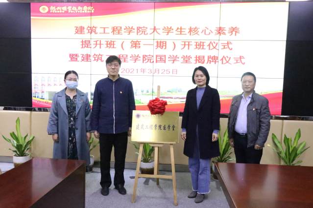 2021年3月25日,建筑工程学院大学生核心素养提升班开班仪式暨国学堂揭牌仪式在特教楼105室举行。校领导张兰英、刘春兰,福州文儒书院院长、1983届财会专业毕业校友孔海钦,学工处、国际教育中心、校友会办公室负责人参加,仪式由建筑工程学院院长叶晓星主持。