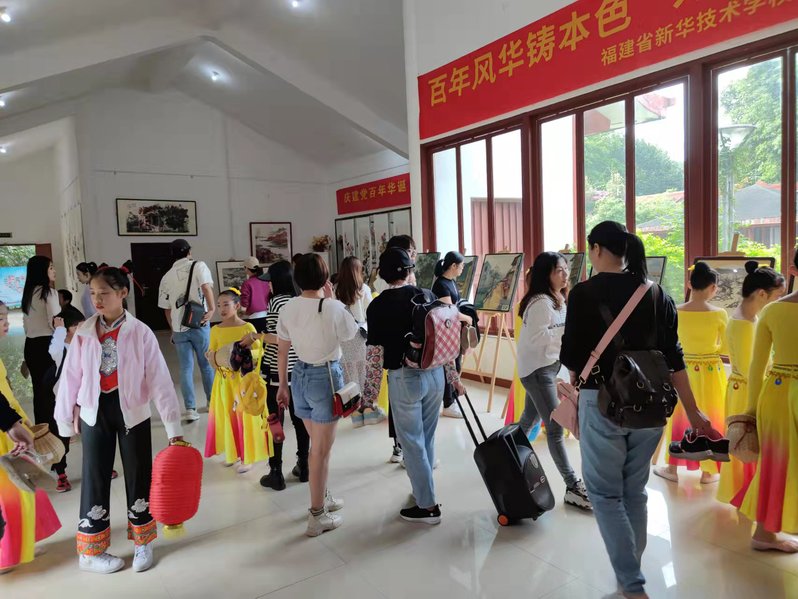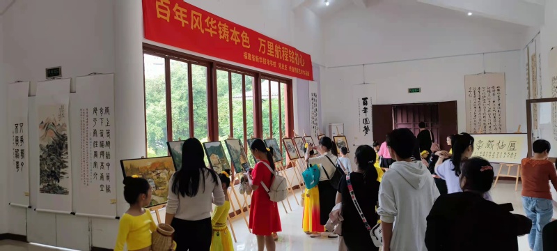 本次展览与仓山区终身教育促进委员会和福建省新华技术学校共同开展,展出期间恰逢周末,吸引了众多家长和孩子们前来参观,大量国画、油画、书法、建盏等精美作品的展出,让大家加强了对于传统文化和非遗文化的认识,收获了一场独特的艺术体验。
