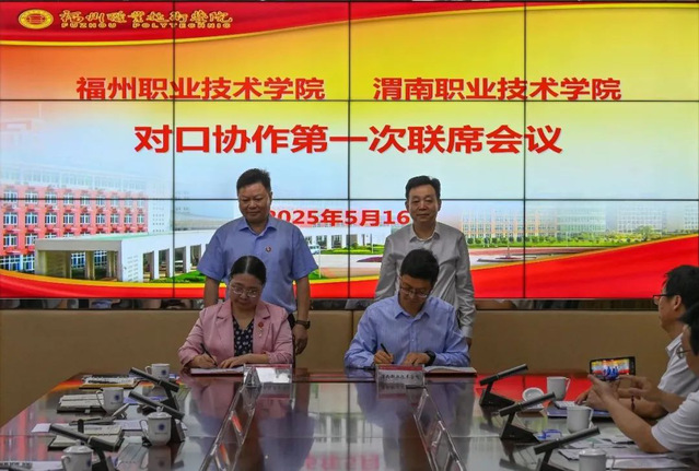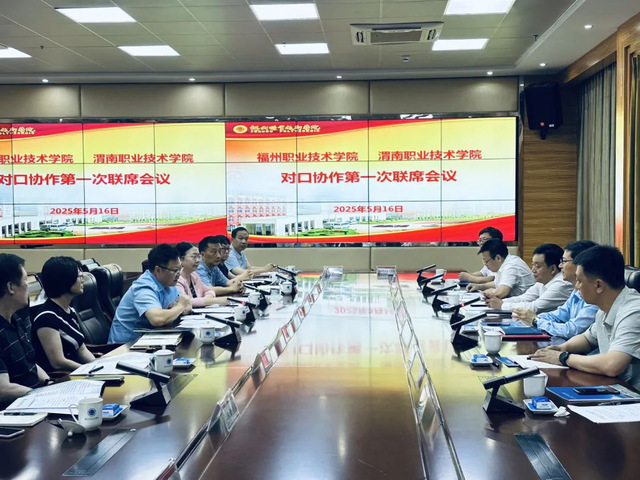 为进一步落实《渭南市人民政府福州市人民政府新一轮高质量发展战略合作协议》,深化两地教育协作,5月16日,学校与渭南职业技术学院召开对口协作第一次联席会议。福州职业技术学院校长陈念东、党委副书记刘春兰,渭南职业技术学院党委书记陈峰、副校长赵永刚,以及两校相关部门负责人参加会议。