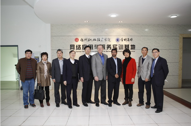 2013年12月12日上午,世界500强、网络行业全球领军企业思科公司公共事务部高级总监(思科网院全球总负责人)Michael Yutrzenka、公共事务部高级总监Harbrinder Kang、大中华区副总裁奚祖强、公共事务部总监练沛强等一行莅临我院考察并参加“思科网院实践与创新中心”挂牌仪式。林承超院长、詹碧卿副院长、金科集团董事长何志坚以及学院有关部门领导等陪同参观了学院计算机系金科实训基地及学生工作室。詹碧卿副院长从合作历程、合作模式、合作成效等三个方面介绍了学院与思科、金科等大型企业合作办学的具体情况。