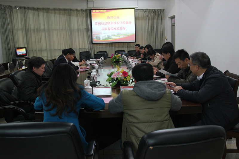 2014年12月10日下午,常州信息职业技术学院院长王丹中、副院长费小平一行8人莅临学院考察交流。学院院长林承超、副院长詹碧卿、院长助理庄晓钟及教务处、机械工程系、电子信息工程系、财经系、应用外语系等负责人热情接待了王院长一行。