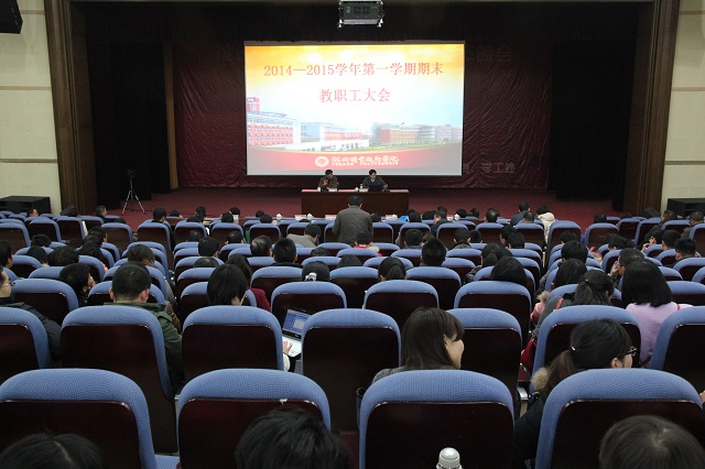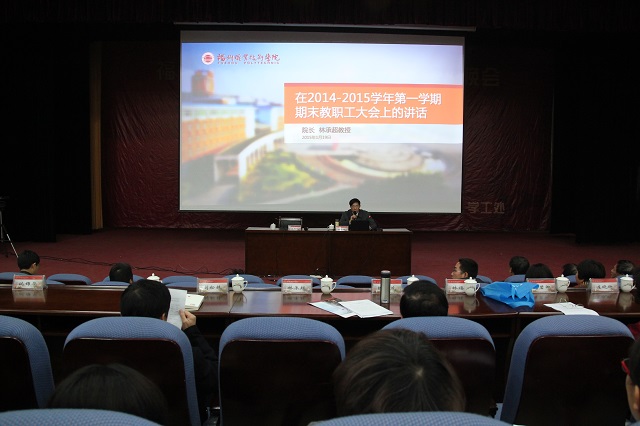 2015年1月19日下午,学院在500人礼堂召开2014-2015学年第一学期期末教职工大会,总结本学期工作。学院党政领导班子全体成员及全体教职员工参加了大会。大会由党委副书记林福荣主持。